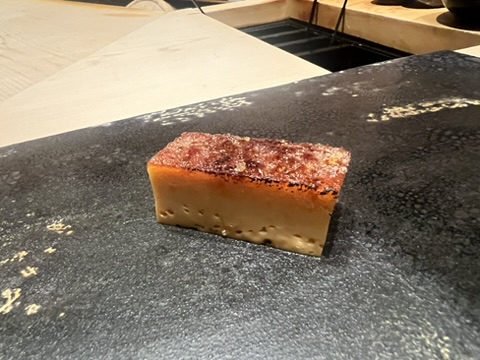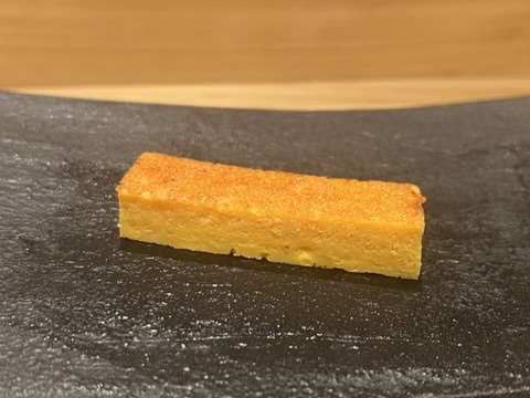 Karasumi. Still creamy, but with some pop of the cured eggs. Excellent, especially as a drinking snack. Kusunoki sells their karasumi to go - about $160 for 5 oz.
