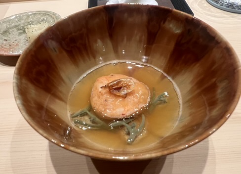 Kurumaebi-stuffed shiitake. This was 1/4 of the shiitake. One of the bites of the trip - to have both of these cooked but juicy and bouncy medium requires a lot of skill