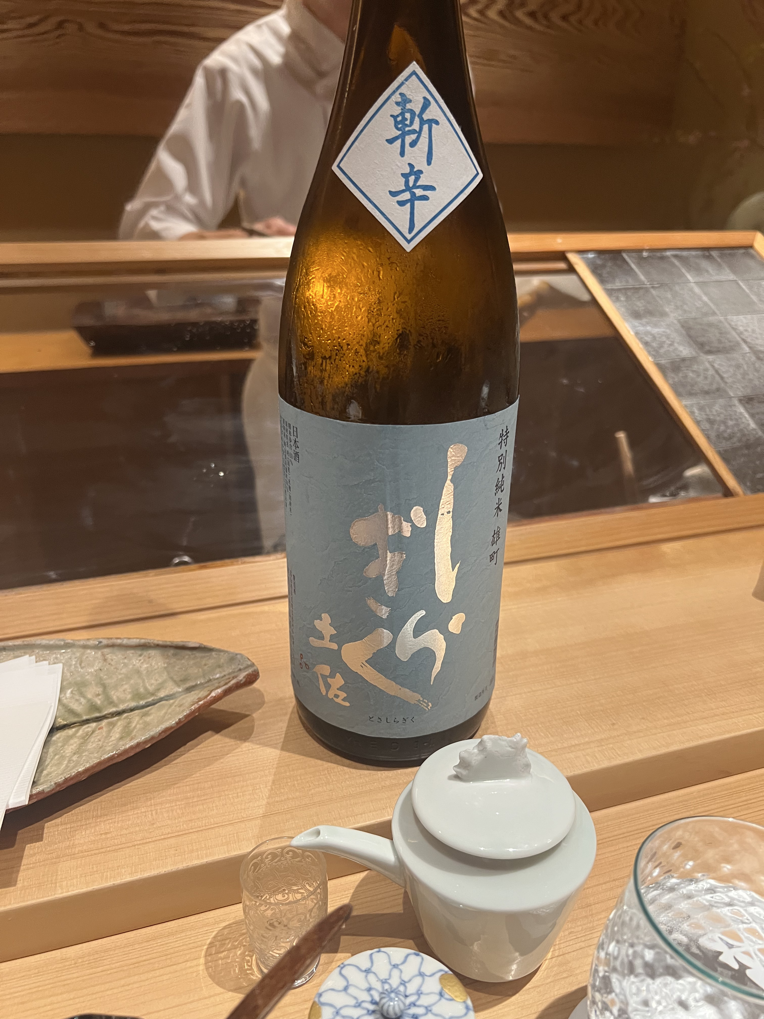 It’s a comfortable and spacious spot with some nice plateware from Japanese pottery to vintage Baccarat. Sake, which is served in wine glasses, were seasonal releases by good modern breweries - Senkin x UA, Hououbiden Reserve Assemblage, Shiraito x Toyo Bijin project for Shiraito’s anniversary, Akabu x UA, Muryozan, etc.