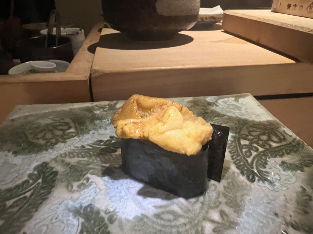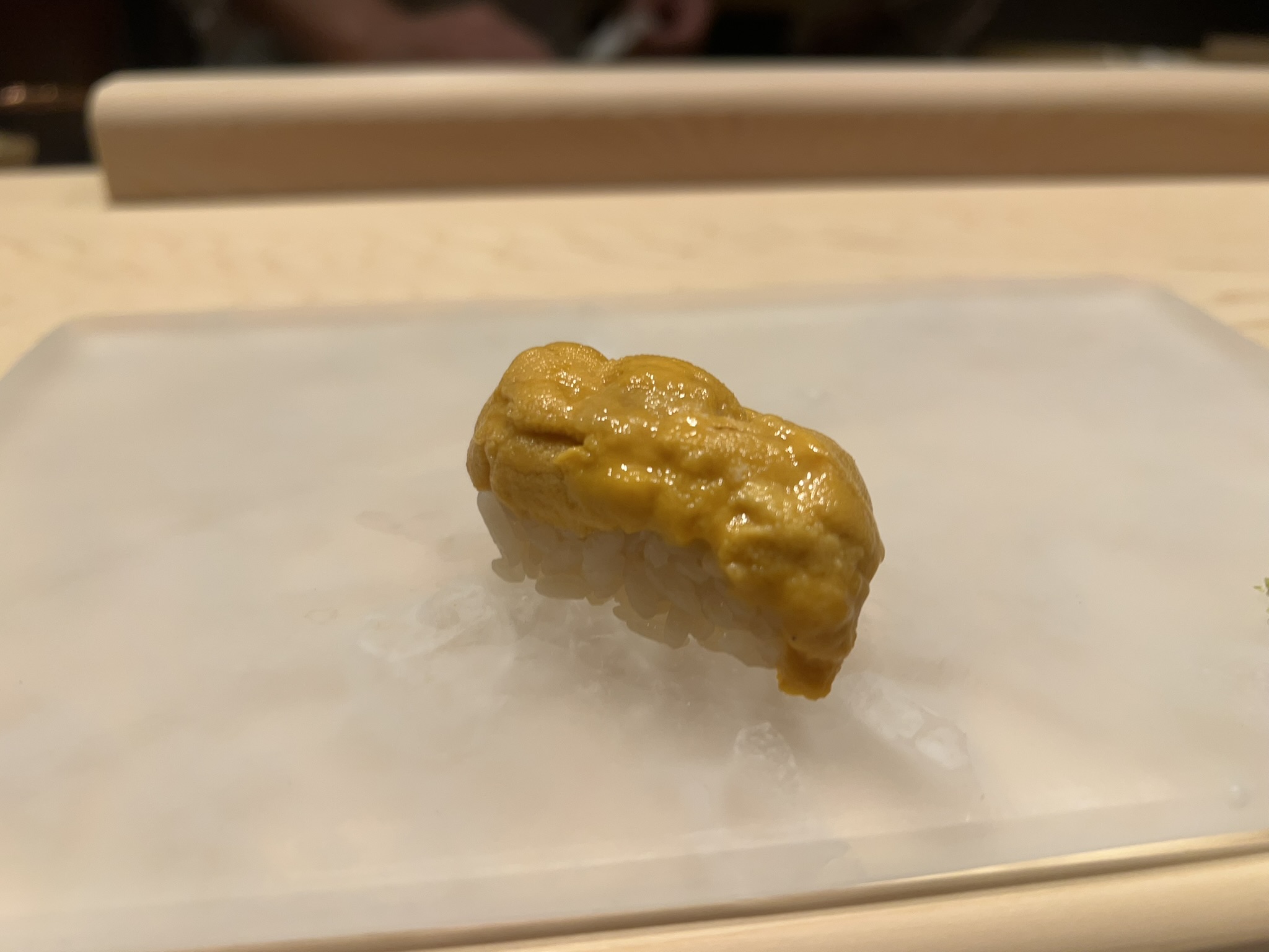 But then nigiri started with a serious 5x tuna sequence - chutoro senaka, akami, chutoro hara, otoro, and seared skin meiji maguro. The tuna nigiri were actually really good. Double serving of uni (rare akauni from awaji island and hadate high box from hakodate) gunkan was a real delight, too. They’re definitely doing things presented in a unique way, but there were some great tastes at times, particularly the tuna. Ingredient quality can be very high - Yamayuki tuna, very good uni, etc.