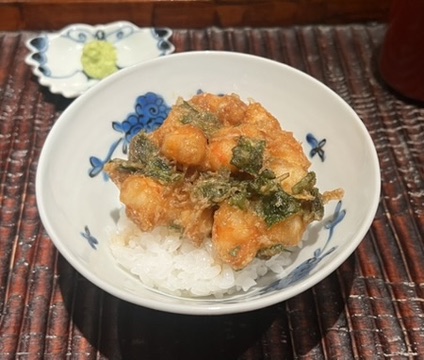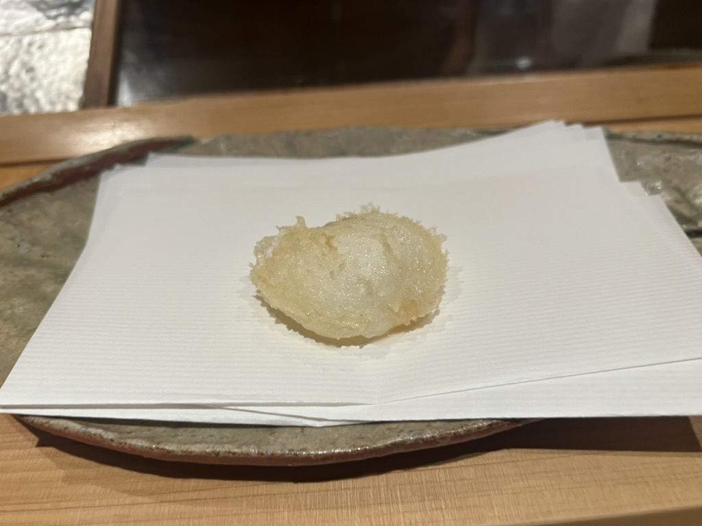 Kusunoki style uses an “oil cutting” technique that reduces oil on the surface, so the chefs deliver the tempura directly to your plate by hand to prove there’s no oil residual (or their fingers would be burnt). Amazingly, your paper serving retains no oil at the end of the meal, like no visible oil at all.