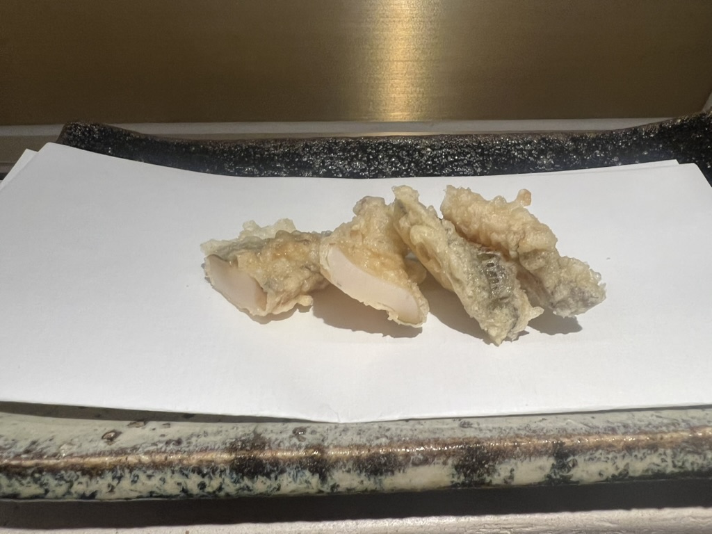 3 starters then about 18 servings of tempura and a few dishes before dessert and add-ons. I added giant oyster, karasumi, megochi, and kisu.