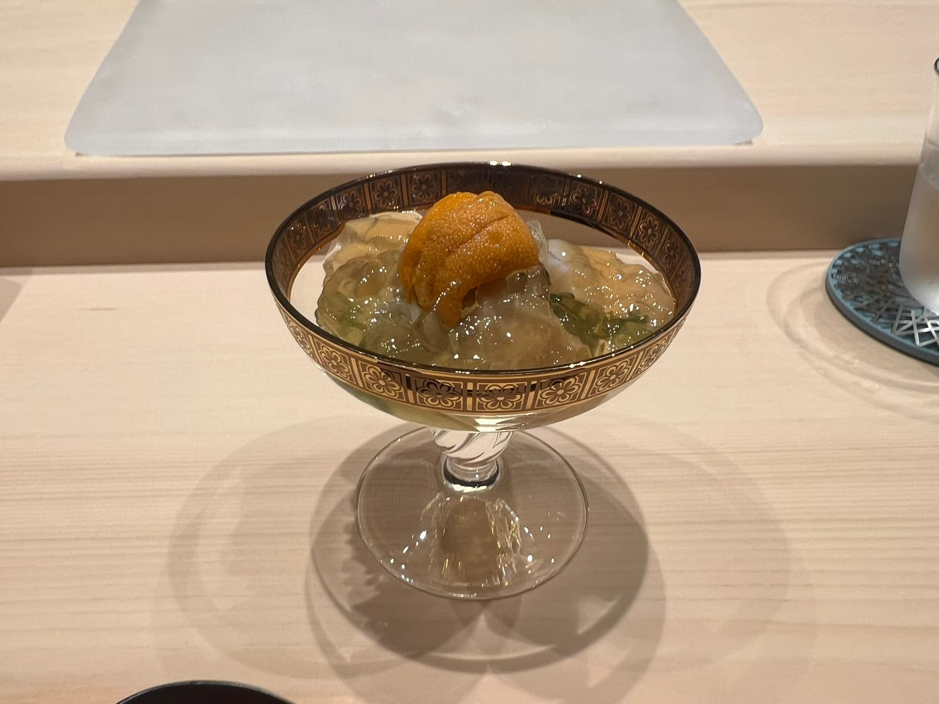 - Sushi Kondo, 1st visit. Relaxed but sophisticated sushiya that opened in 2024 in Azabu Juban from a young chef with both kaiseki and sushi background. At 27,500 jpy, the meal is a good value and option in the mid-priced range, particularly if you like a kaiseki-sushi hybrid. I like to try spots from young talent and I had a very enjoyable meal that I think (over)delivers for the price tier. Most of my other sushi meals cost 1.5-2x +, so a direct comparison isn’t really fair, but I had a really enjoyable time here and there were some really nice bites - the starting dishes were strong in particular.