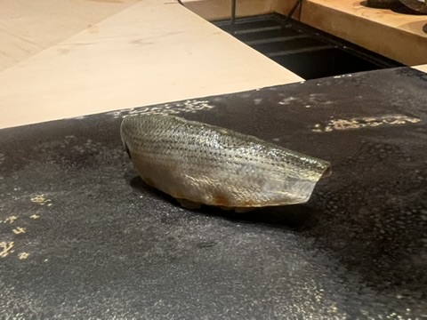 Ingredients for extra orders: karasumi (very high quality), giant oyster, kisu, megochi (an old school edomae staple fish called “bigeye flathead”)