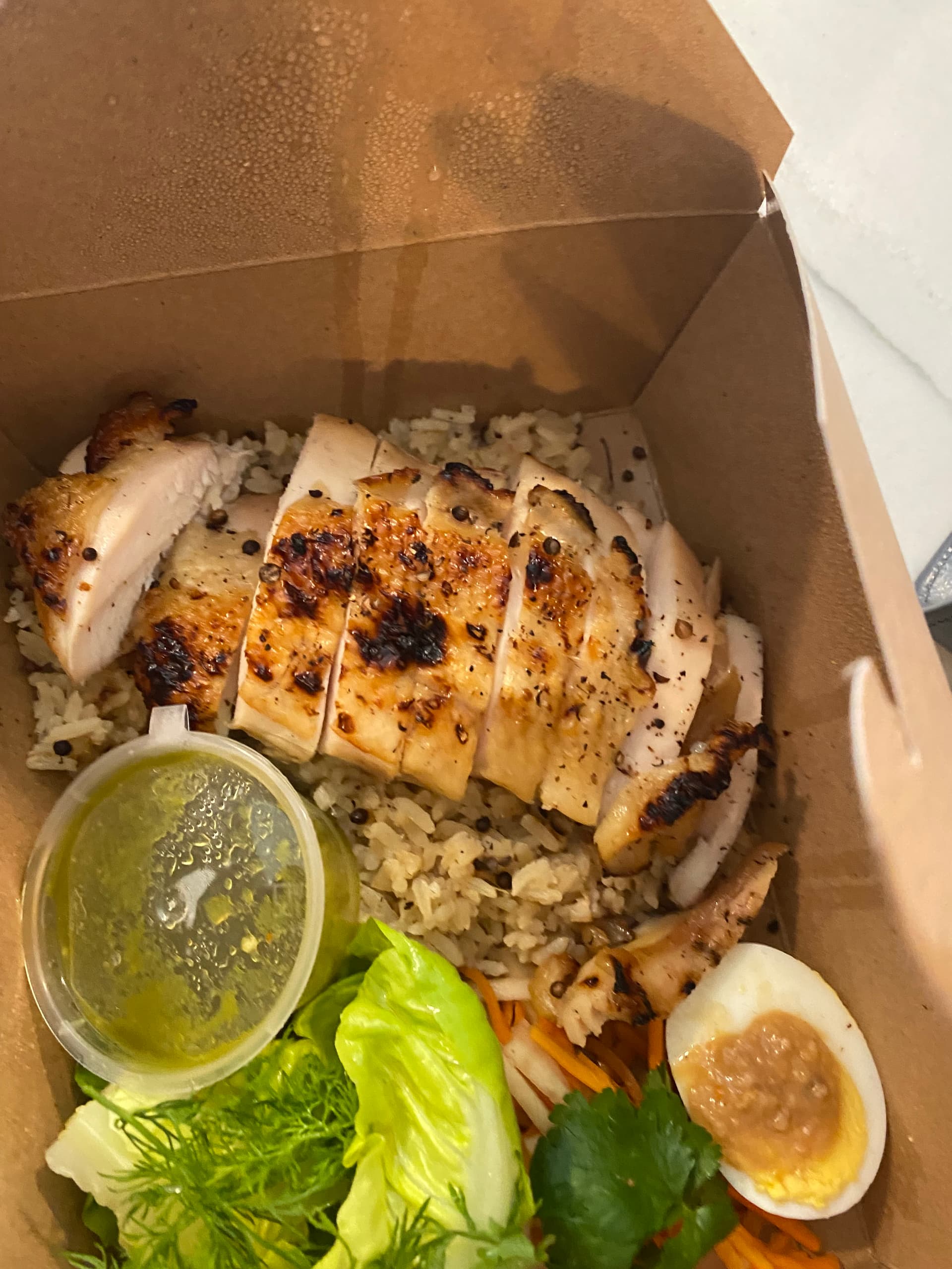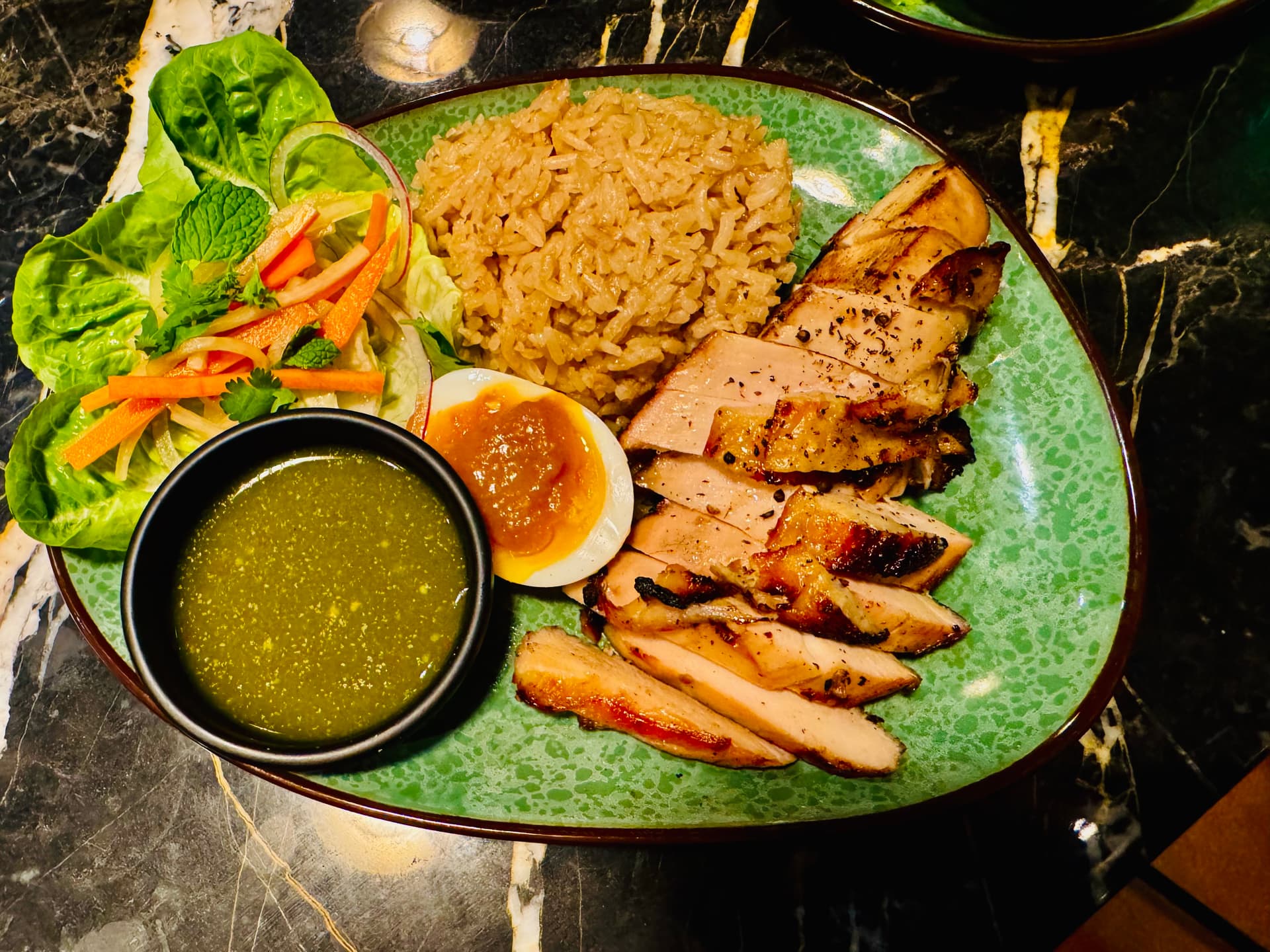 I don’t have much more to add than @hungryhungryhippos & @Dommy. Caesar is delicious, chicken breast is a tad dry (but just a tad, marinade is good) & the pork is stellar— hubs was still talking about it the next day #GoodIngredientsMatter. I also loved the garlic chicken rice, jammy egg w/sauce & spicy pickled vedge.
